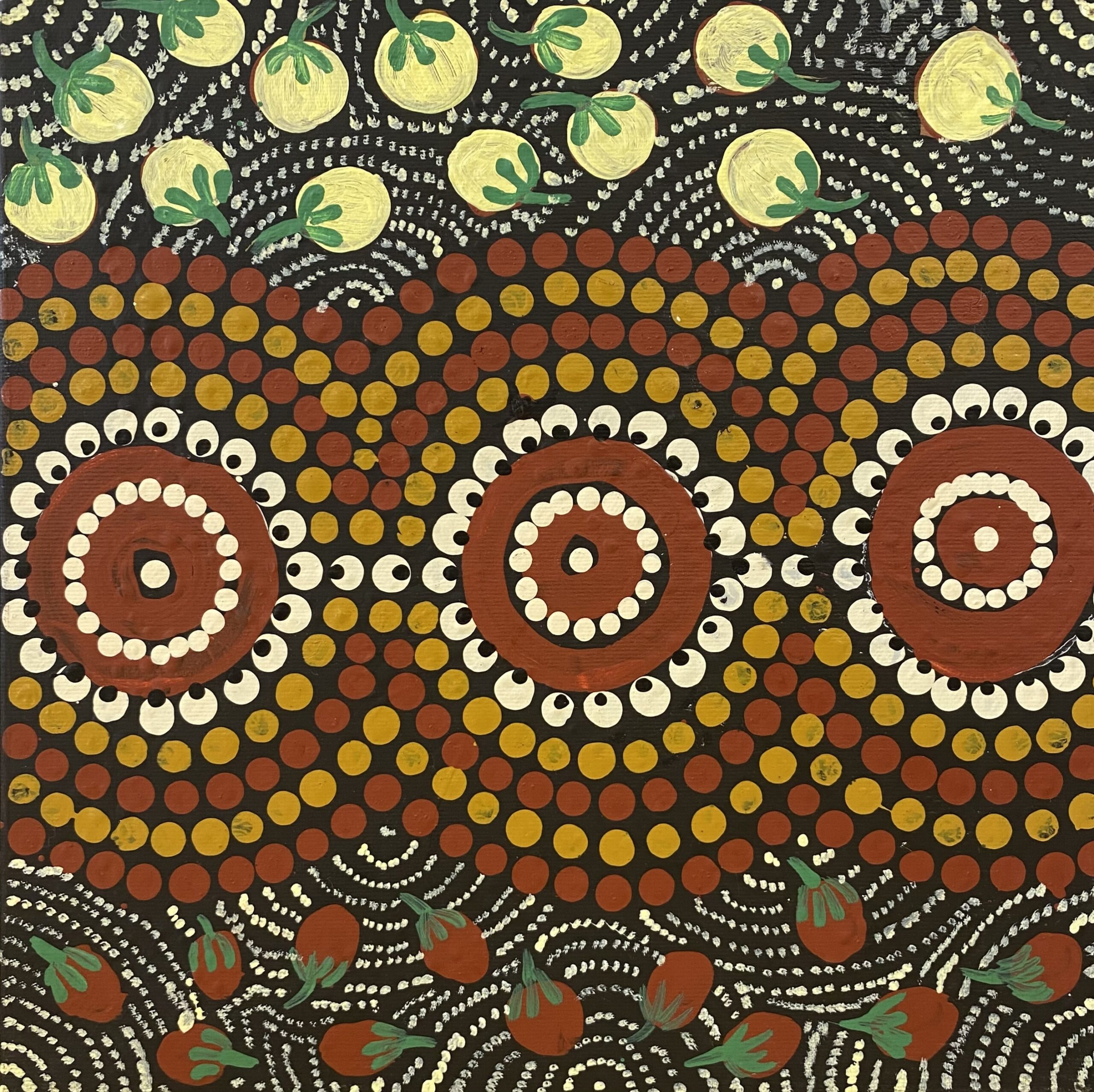 This is Loretta and her stunning art. She is an awesome bushwoman. Loretta has been working on the committee to setup Inkwareny Artists. She is an outstanding artist and we love her sense of humour. More of her paintings can be found at Inkwareny artists.com.